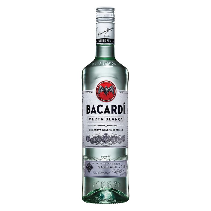 Botella de ron blanco Bacardí.